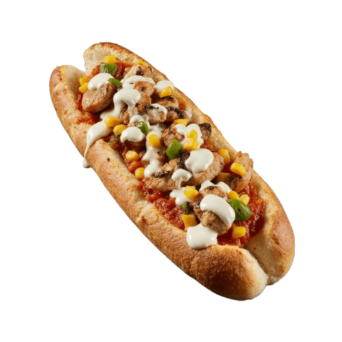 sos, ser, kurczak, kukurydza, papryka, pieczarki, sos czosnkowy