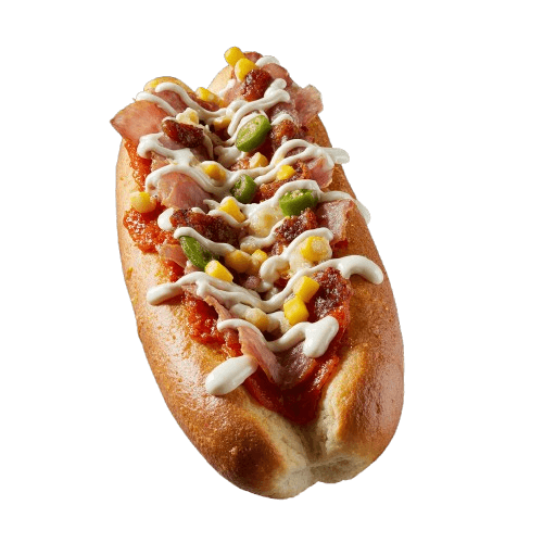 sos, ser, szynka, boczek, kukurydza, papryka, sos czosnkowy