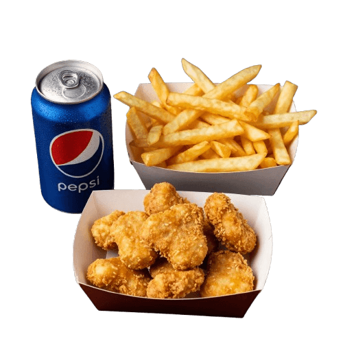 6 sztuk, frytki, surówka lub pepsi puszka